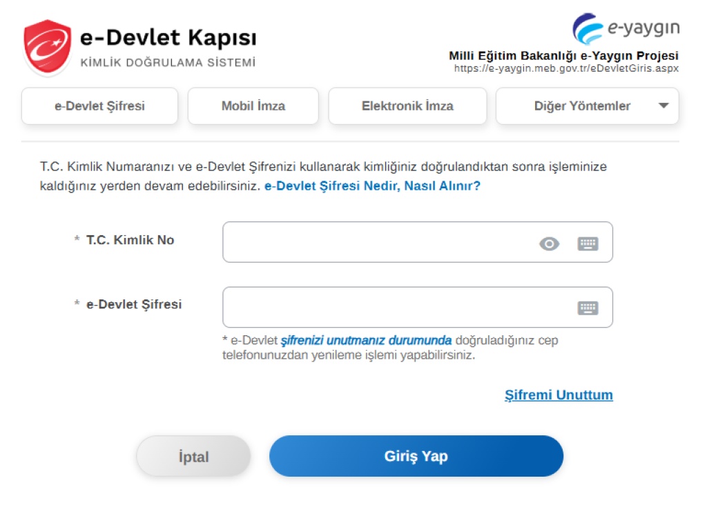 E-Yaygın Ana Sayfasına Girin: E-Yaygın sitesine giriş yapın.