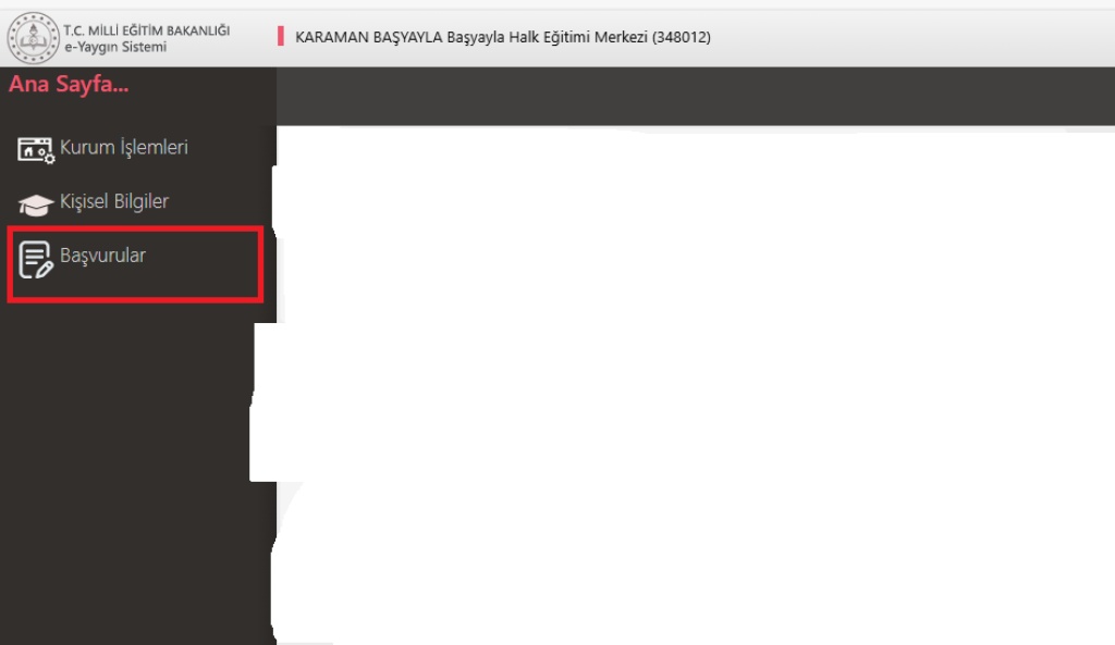 "Başvurular" Menüsüne Tıklayın: Üst menüden "Başvurular" kısmına tıklayın.