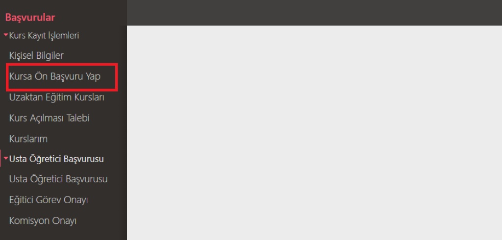 "Kursa Ön Başvuru Yap" Seçeneğini Seçin: Açılan sayfada "Kursa Ön Başvuru Yap" butonuna tıklayın.