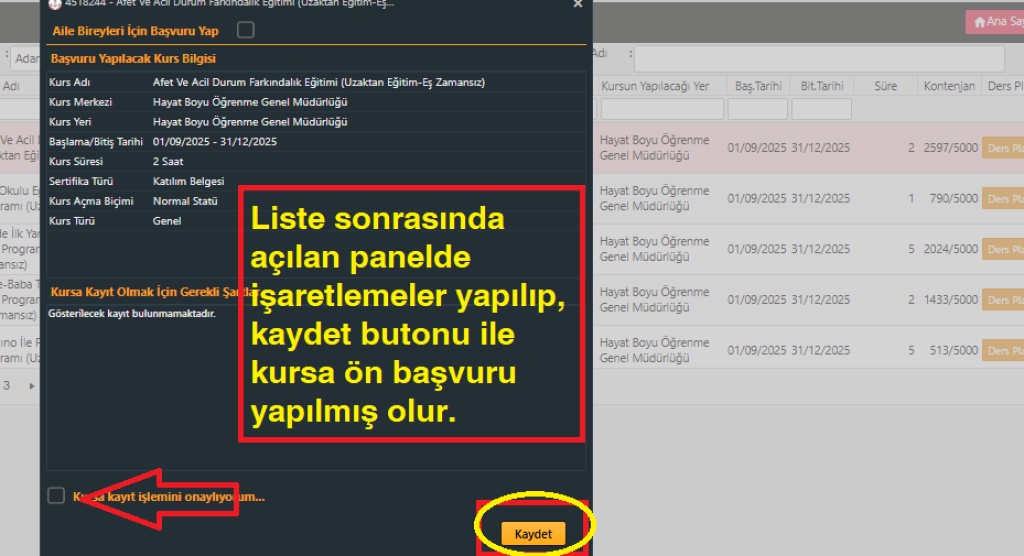 Ön Başvuruyu Tamamlayın: Seçtiğiniz kursun sayfasına gidip ön başvuruyu tamamlayın.